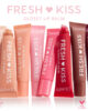 Privoščite svojim ustnicam nekaj dobrega. Okusno. Sijajno. Vlažilno. Naš balzam za ustnice Fresh Kiss Glossy je obogaten s peptidi, ki mehčajo in negujejo ustnice, ter hialuronsko kislino za globinsko vlaženje. Mehka, izjemno mehka formula ustnice prepoji s sijajnim zaključkom in kančkom barve. Okusite vseh 8 slastnih okusov, ki dišijo tako dobro, kot se počutijo.