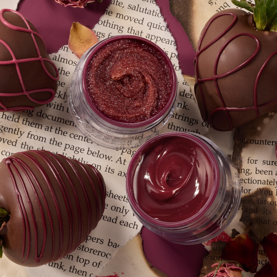 Za valentinovo si zagotovite sladke, poljubljive ustnice s tem pilingom in masko za ustnice v omejeni izdaji z okusom dekadentne čokoladne jagode!
