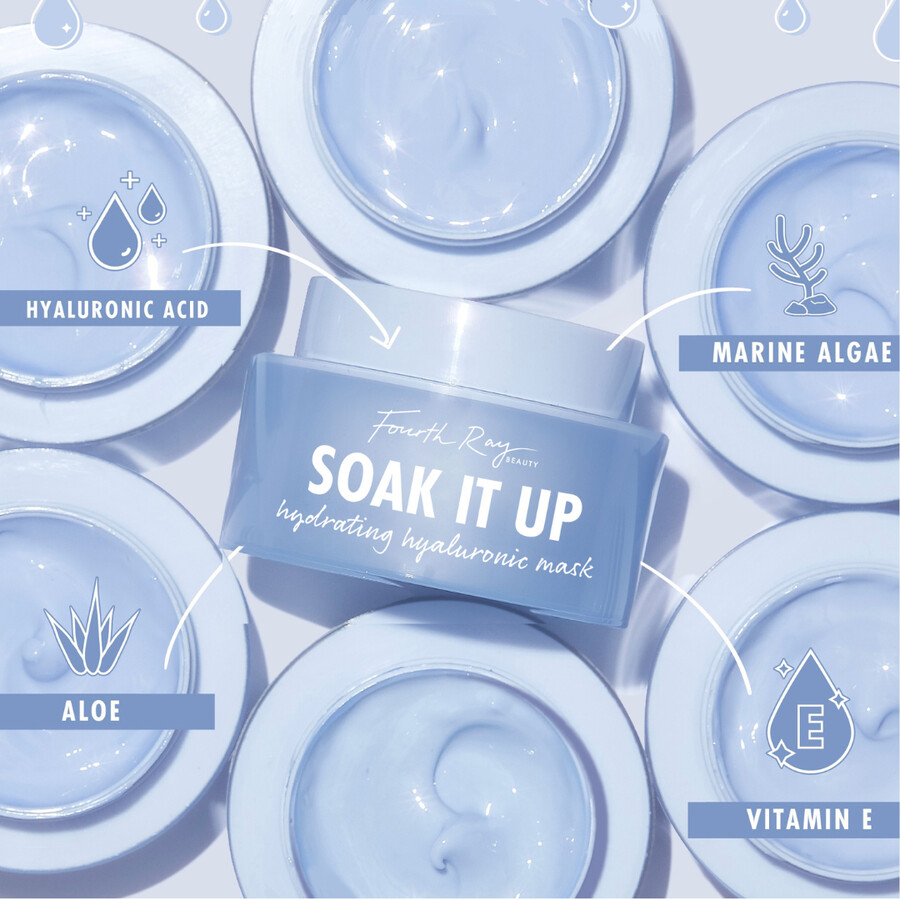 KAJ DELUJE – Potopite se v globinsko hidratacijo s to negovalno kremno masko. Soak It Up pomlajuje suho, utrujeno in preobremenjeno kožo ter vam pusti obnovljeno polt.